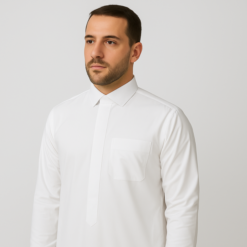 استمتع بإطلالة أنيقة ومريحة مع ثوب البلد الرجالي باللون الكريمي الفاخر. يتميز بتصميم قلاب كلاسيكي يعكس الأصالة والتميز، مع أكمام سادة لمظهر بسيط وراقٍ. مزود بسحاب أمامي لسهولة الارتداء، مما يجعله مثاليًا للاستخدام اليومي والمناسبات. مصنوع من أجود أنواع الأقمشة التي تمنحك الراحة طوال اليوم مع نعومة وانسيابية استثنائية.