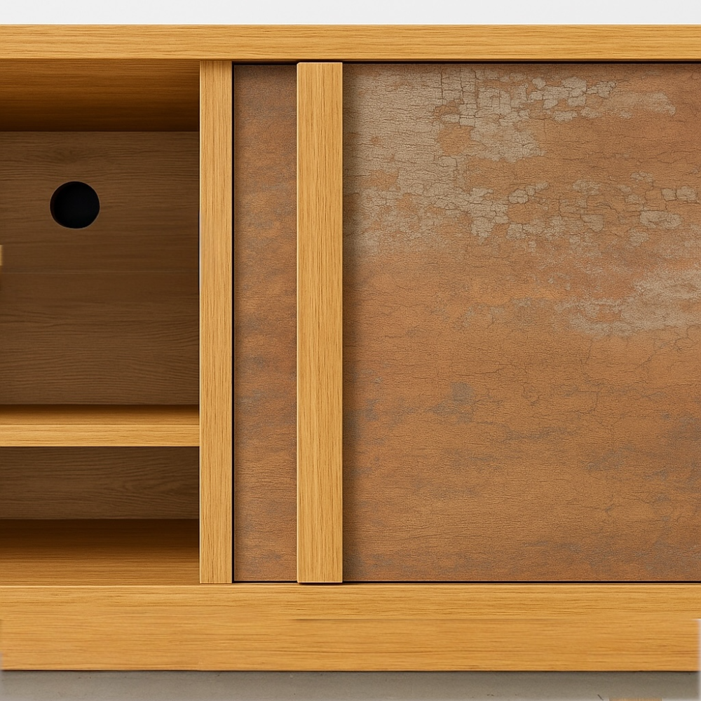 طاولة تلفزيون خشبية بتصميم عصري من دمج الخشب الطبيعي – مقاس 140 سم