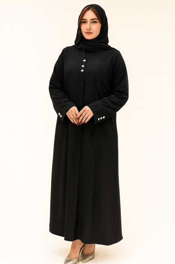 عباية سوداء كلاسيكية بأزرار لؤلؤية