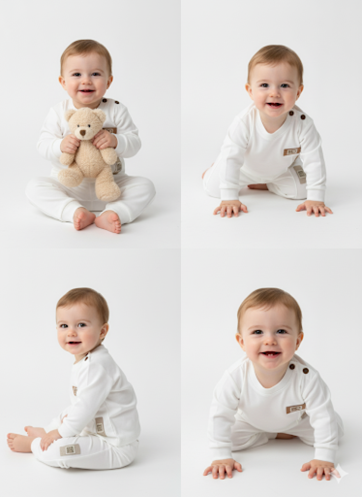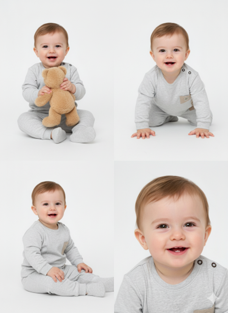 طقم مريح وناعم للمواليد مصنوع من قماش قطني عالي الجودة، يأتي بتصميم عملي بلونين هادئين: الرمادي الفاتح والأبيض. يتميز بياقة دائرية وأزرار صغيرة على الكتف لتسهيل اللبس والخلع، مع لمسات جانبية أنيقة منقوشة تضيف مظهرًا عصريًا. الطقم يوفر لطفلك الراحة والحرية في الحركة طوال اليوم.